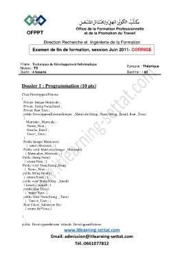 Filière : Techniques de Développement Informatique Epreuve : Théorique