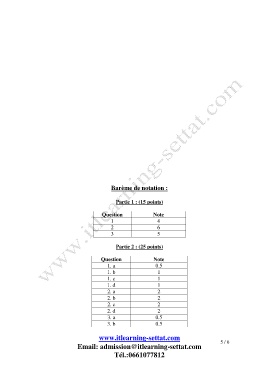 Barème de notation :
