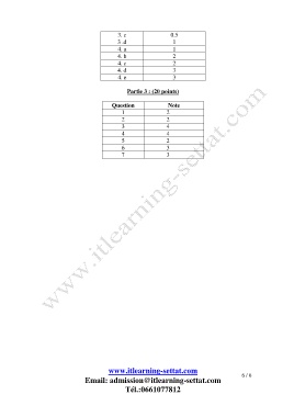 3. c 0.5 3 .d 1 4. a 1 4. b 2 4. c 2 4. d 3 4. e 3 Partie 3 : (20 points) Question Note 1 2 2 2 3 4 4 4 5 2 6 3 7 3 www.itlearning-settat.com 6 / 6 Email: admission@itlearning-settat.com Tél.:0661077812
