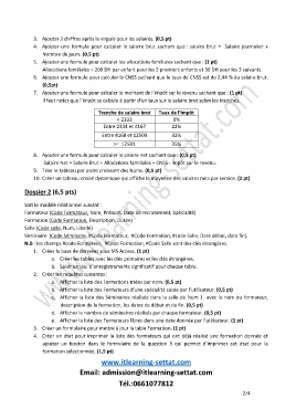 3. Ajouter 2 chiffres après la virgule pour les salaires. (0,5 pt)