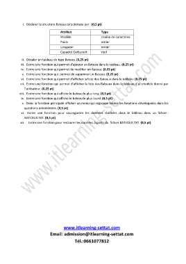 vi. Ecrire une fonction qui permet d’afficher la liste des Bateaux dans le tableau. (0,25 pt)