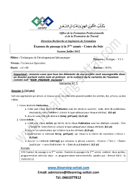 123) Examen de passage à la 3 ème année : Examen de passage à la 3 ème année contient deux parties,