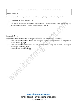 L’utilisateur peut choisir une parmi les 4 options ci-dessus. L’option4 permet de quitter l’application.