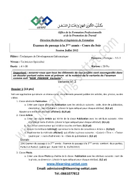 134) Examen de passage à la 3 ème année : Examen de passage à la 3 ème année contient deux parties,