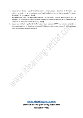 4. Ajouter une méthode « getNombreDeFormateur » dans la classe « Complexe de formation » qui