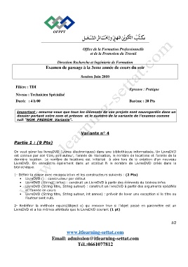 1- Définir la classe avec encapsulation et les constructeurs suivants : (2 Pts)