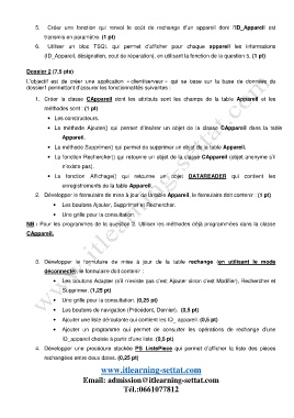 2. Développer le formulaire de mise à jour de la table Appareil, le formulaire doit contenir : (1 pt)