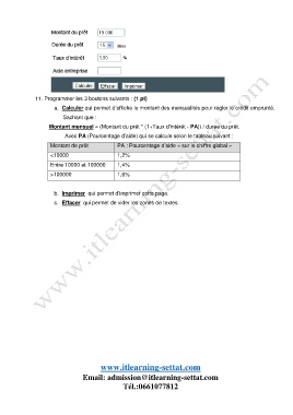 a. Calculer qui permet d’affiche le montant des mensualités pour régler le crédit emprunté.