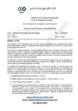 Filière : Techniques de Développement Informatique Epreuve : Théorique