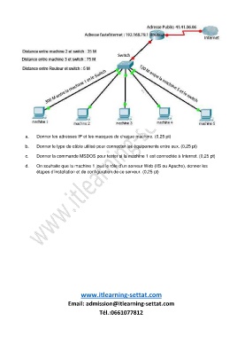 b. Donner le type de câble utilisé pour connecter les équipements entre eux. (0,25 pt)