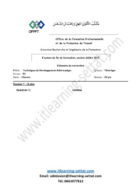 Filière : Techniques de Développement Informatique Epreuve : Théorique