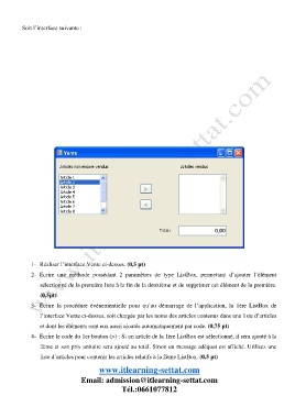 1- Réaliser l’interface Vente ci-dessus. (0,5 pt)