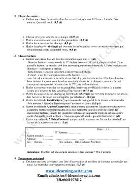 a. Définir une classe Facture dont les caractéristiques sont : (1 pt)