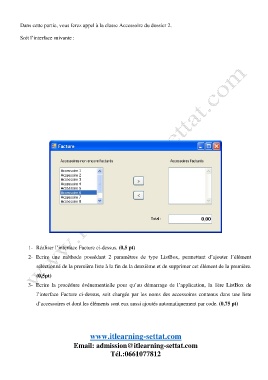 l’interface Facture ci-dessus, soit chargée par les noms des accessoires contenus dans une liste