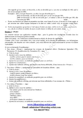 2. Une classe « Filière », représentant les spécialités de formation offertes : (2pts)