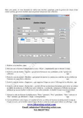 Dans cette partie, on vous demande de réaliser une interface graphique, pour la gestion des étapes d’une