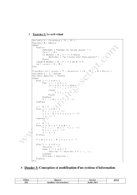 Procédure cerf_volant ( T : Caractère [ 20 , 20 ] ; N : Entier )