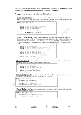 Classe "Composant" : Ayant comme attributs la référence du composant, la désignation du