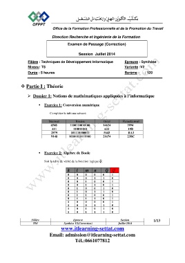 Dossier 1: Notions de mathématiques appliquées à l’informatique