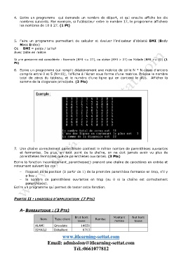 parenthèses fermantes que de parenthèses ouvrantes. (3 Pts)