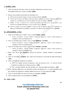 l’ajout des informations d’un Médecin (exemple de format souhaité 05 22.20.20.20). (0.5 Pt)