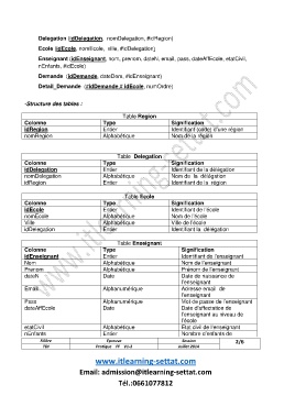 -Structure des tables :