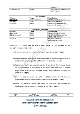 établissement qui correspond à l’établissement où il travaille. (4 pts)