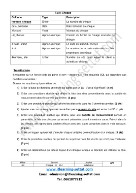 6) Créer un trigger qui permet d’annuler chaque tentative de modification d’un chèque. (3 pts)