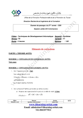 Filière : Techniques de Développement Informatique Epreuve : Synthèse