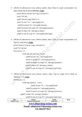 5- Afficher les informations (nom, prénom, numéro, duree, Type de congé) correspondant à un