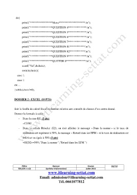 Soit la feuille de calcul Excel ci-dessous relative aux conseils de classes d’un centre donné.