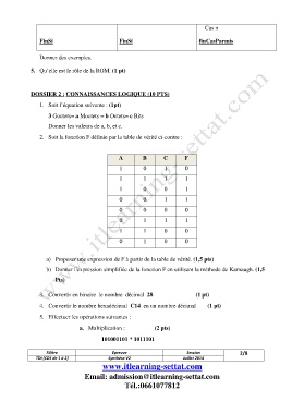DOSSIER 2 : CONNAISSANCES LOGIQUE (10 PTS)