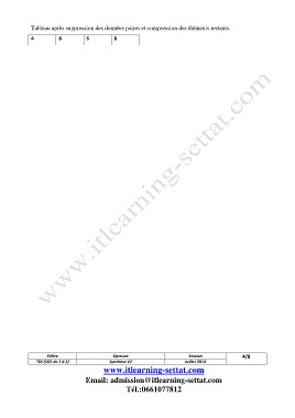 Tableau après suppression des données paires et compression des éléments restants. 4 8 6 8 Filière Epreuve Session 4/8 TDI (CDS de 1 à 2) Synthèse V2 Juillet 2014 www.itlearning-settat.com Email: admission@itlearning-settat.com Tél.:0661077812