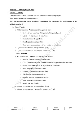 a. Créer une classe Permis caractérisée par : (2 pts)