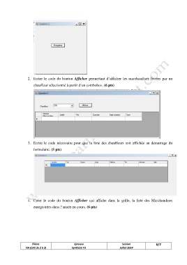 2. Ecrire le code du bouton Afficher permettant d’afficher les marchandises livrées par un