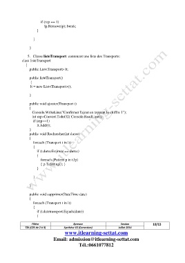 5. Classe listeTransport contenant une liste des Transports: