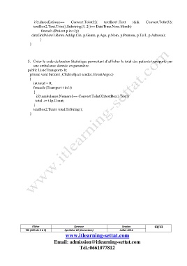 5. Créer le code du bouton Statistique permettant d’afficher le total des patients transporté par