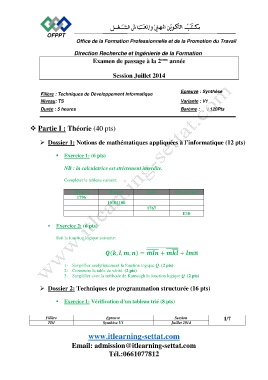 Dossier 1: Notions de mathématiques appliquées à l’informatique (12 pts)