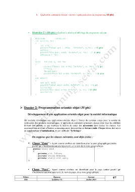 Exercice 2 : (10 pts) : Quel est le résultat d’affichage du programme suivant