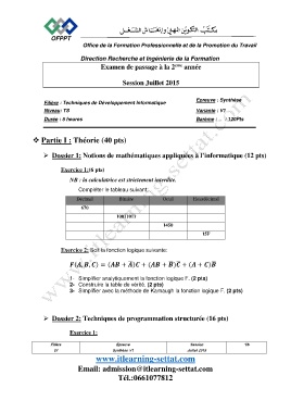 Dossier 1: Notions de mathématiques appliquées à l’informatique (12 pts)