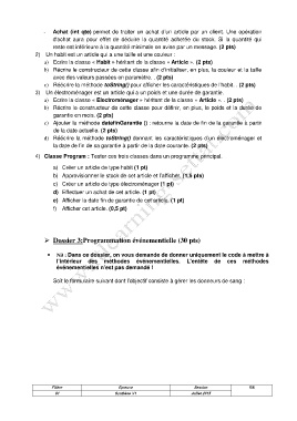 a) Ecrire la classe « Electroménager » héritant de la classe « Article ». . (2 pts)