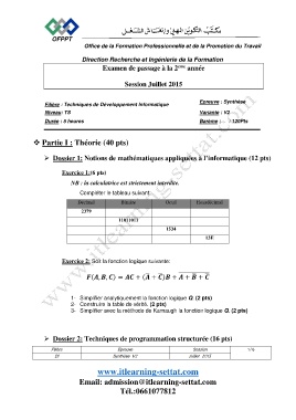 Dossier 1: Notions de mathématiques appliquées à l’informatique (12 pts)