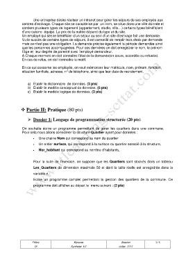 Ecrire un programme complet permettant la gestion des quartiers de la commune. Ce