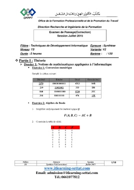 Dossier 1: Notions de mathématiques appliquées à l’informatique