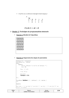3- Simplifier avec la méthode de Karnaugh la fonction logique f.