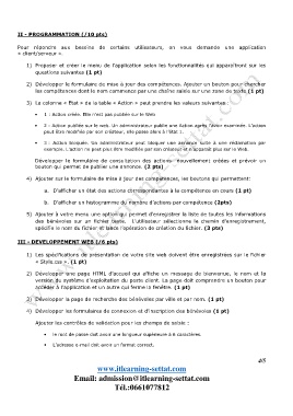a. D’afficher un état des actions correspondantes à la compétence en cours (1 pt)