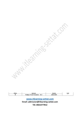 Filière Epreuve Session 7/7 DI Pratique Fin de Formation V1-2 Juillet 2015 www.itlearning-settat.com Email: admission@itlearning-settat.com Tél.:0661077812