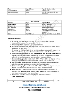 · Pour toute mise à jour de la table contrat on doit modifier automatiquement les