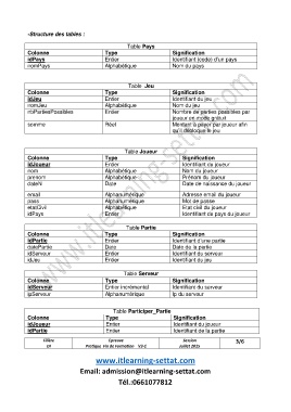 -Structure des tables :