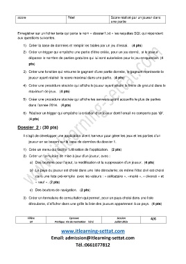 joueur en se basant sur la base de données du dossier 1.
